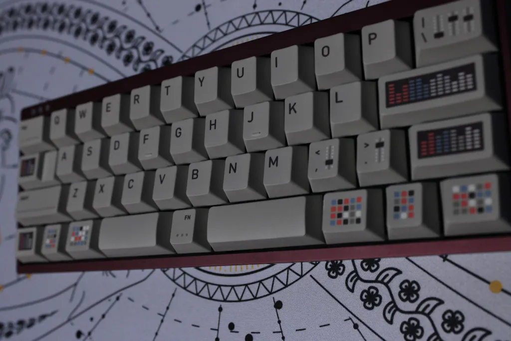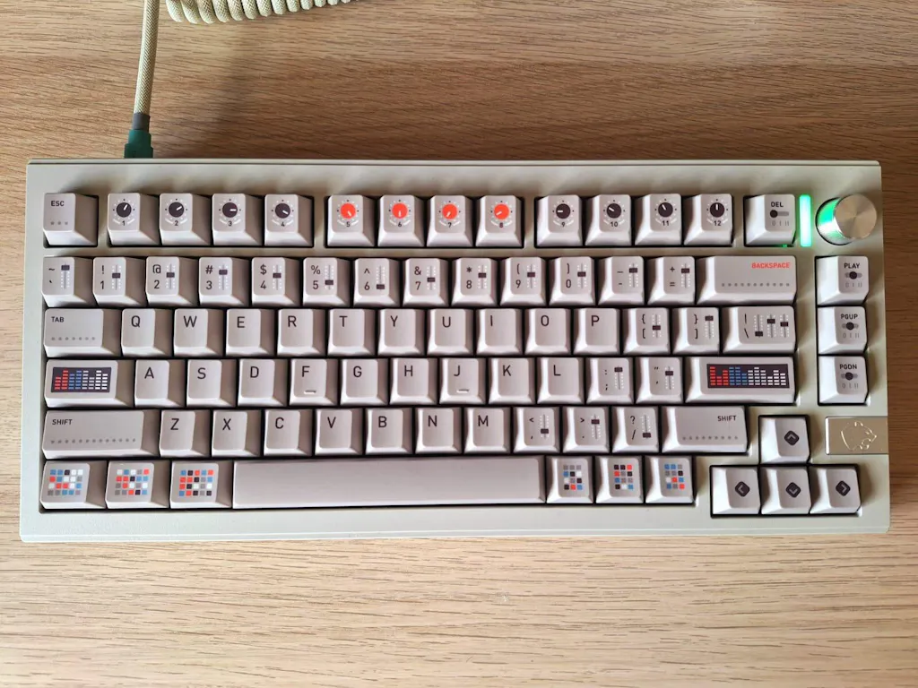 MV SYNTH is a stunning set of keycaps paying homage to the iconic synths of yesteryear.